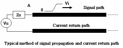 When a current flows on a signal trace, there is always a return loop. If some current goes out to somewhere, it will always come back to source. The path of returning current is Return Path. Return path is formed differently depends on frequency. At low frequencies, the current follows the path of least resistance. At high frequencies, current follows the path of least inductance and it stays tightly bunched near signal trace.