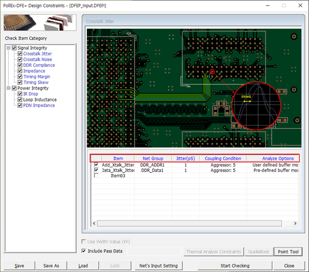 - Jitter: Enter allowable maximum crosstalk jitter amount in pS unit.