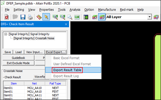 • Coupling Map Result: Upon selecting this option, Include the results of the Coupling Map result of each net and item in the Excel report.