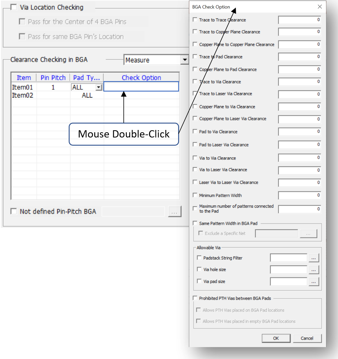 - Clearance Checking in BGA: Among defined BGA components, pick the BGA