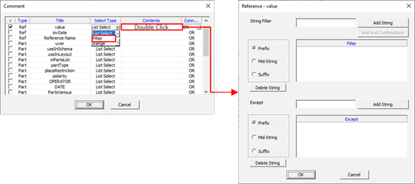 - Component Filter: Set the filter type to be used to select components among part name, package name, footprint name, device name, and reference name.