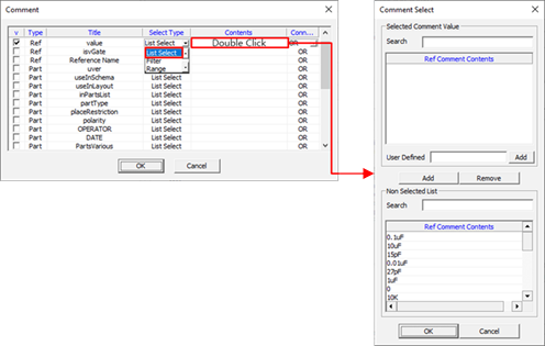 - Add: Add a new component DB file (*.txt) to the list or create a new DB file. To add a new DB file, input a non-existing file name.