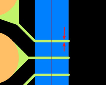 • Check Pattern width in Etching area: Check whether the pattern overlapped with the etching area is designed within the user defined width.