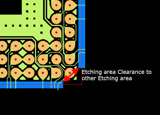 • Etching area Clearance to Copper: Clearance checking between etching area and copper polygon.