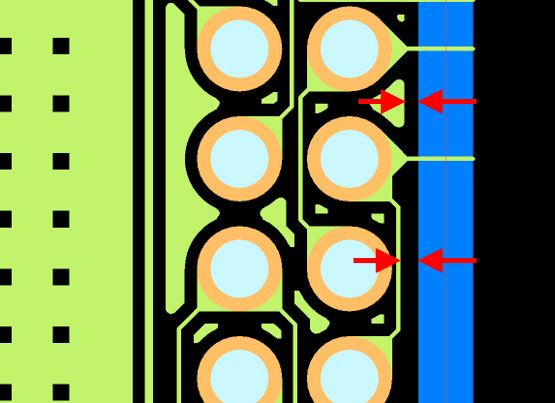 • Etching area Clearance to Solder Mask: Clearance checking between etching area and solder mask.