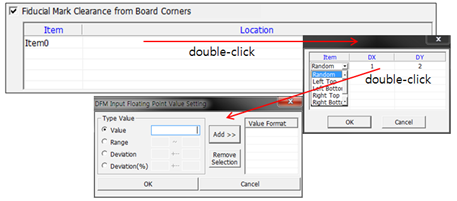 Set the fiducial mark clearance value from each of the board outline corners using the Floating Value Range Input tool.