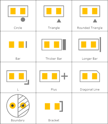 Allowable polarity mark types in PollEx DFM are as follows: If the following types of polarity marks are detected in the searching area, PollEx DFM recognizes that the component has a polarity mark.