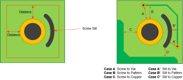 • Clearance to Via: Set the clearance between the screw and via for the top, bottom, and inner layer.