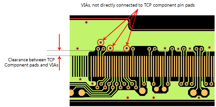 - Clearance between TCP Component and Vias: Set the clearance value