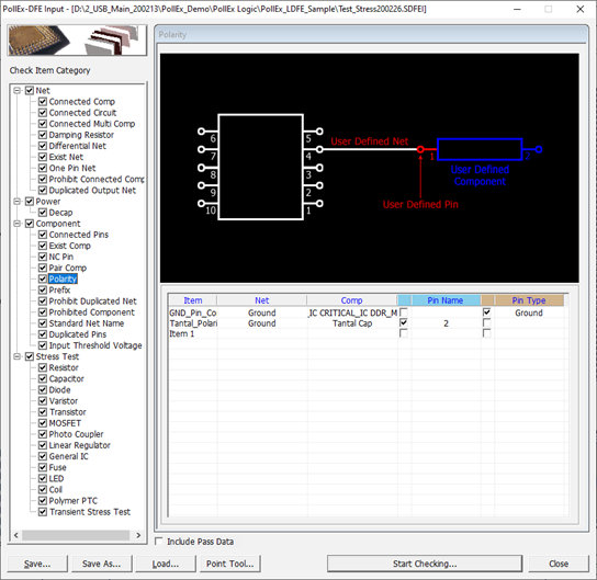 The Polarity DFE rule checks for the connectivity of capacitors or diodes that have