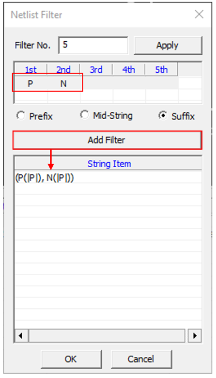 • Filter: It checks if the nets in the Net Group have been paired or the selected Net Properties are paired based on the filter.