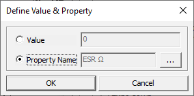 • Resistance: Enter the value of resistance (ESR) or select the property which contain the value of resistance (ESR).