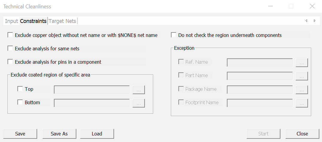 - Exclude nets, unassigned net name - This option excludes nets without names from analysis. For example, “$NONE$”