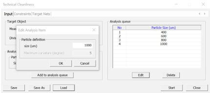 From the menu bar, click Verification > Technical Cleanliness > Input.