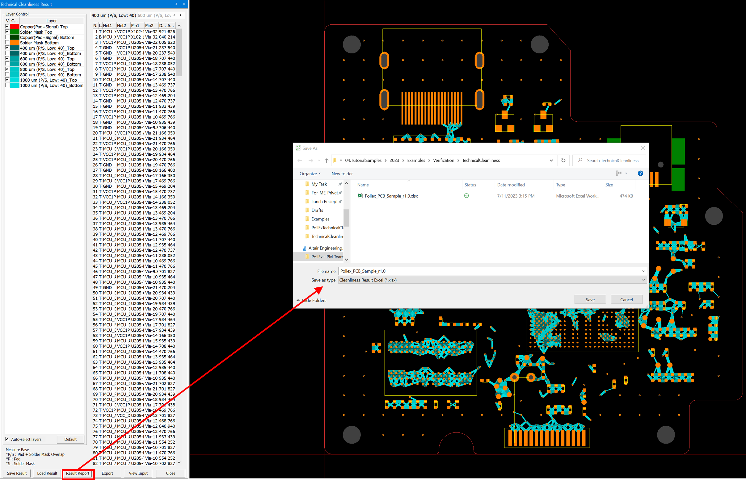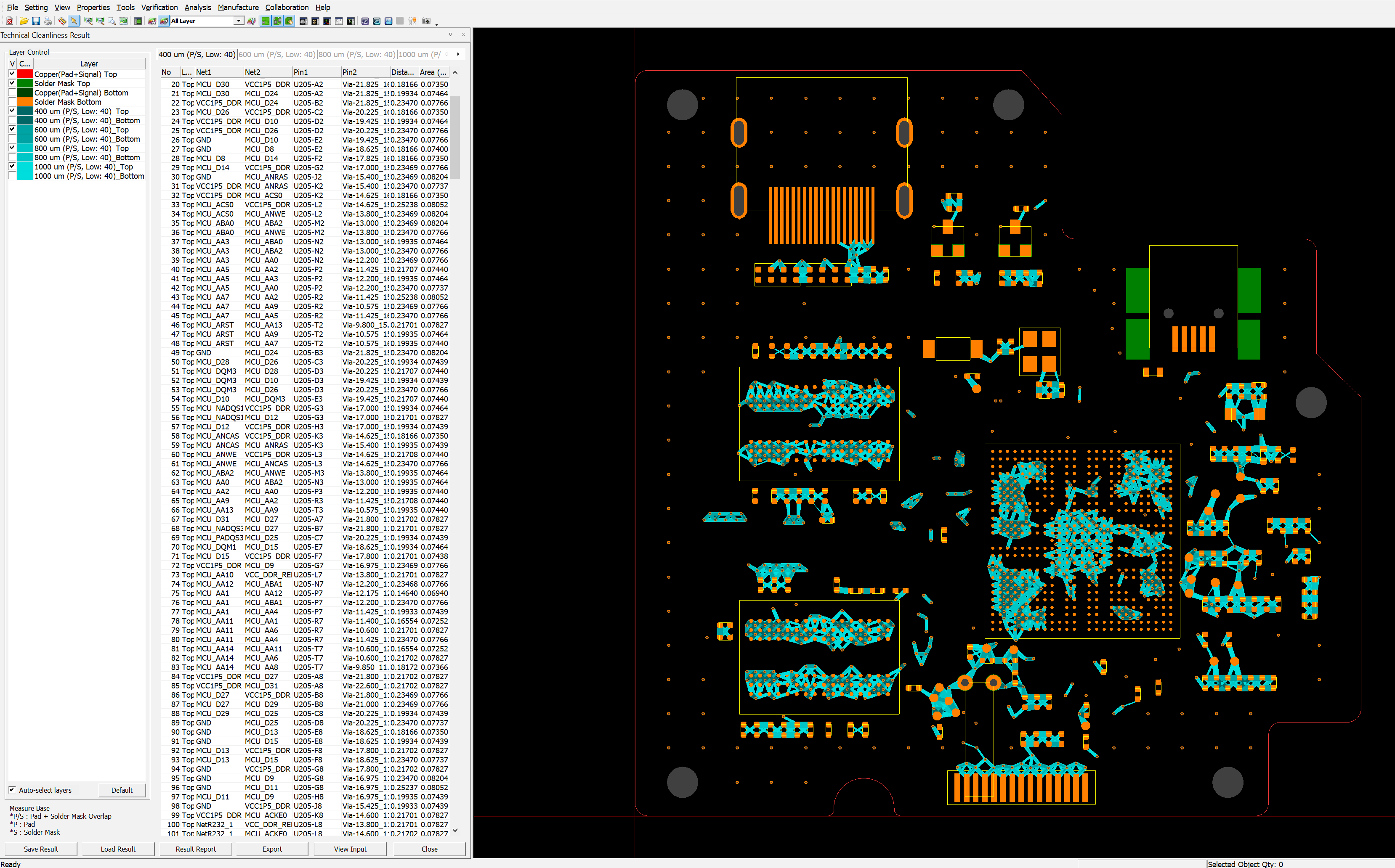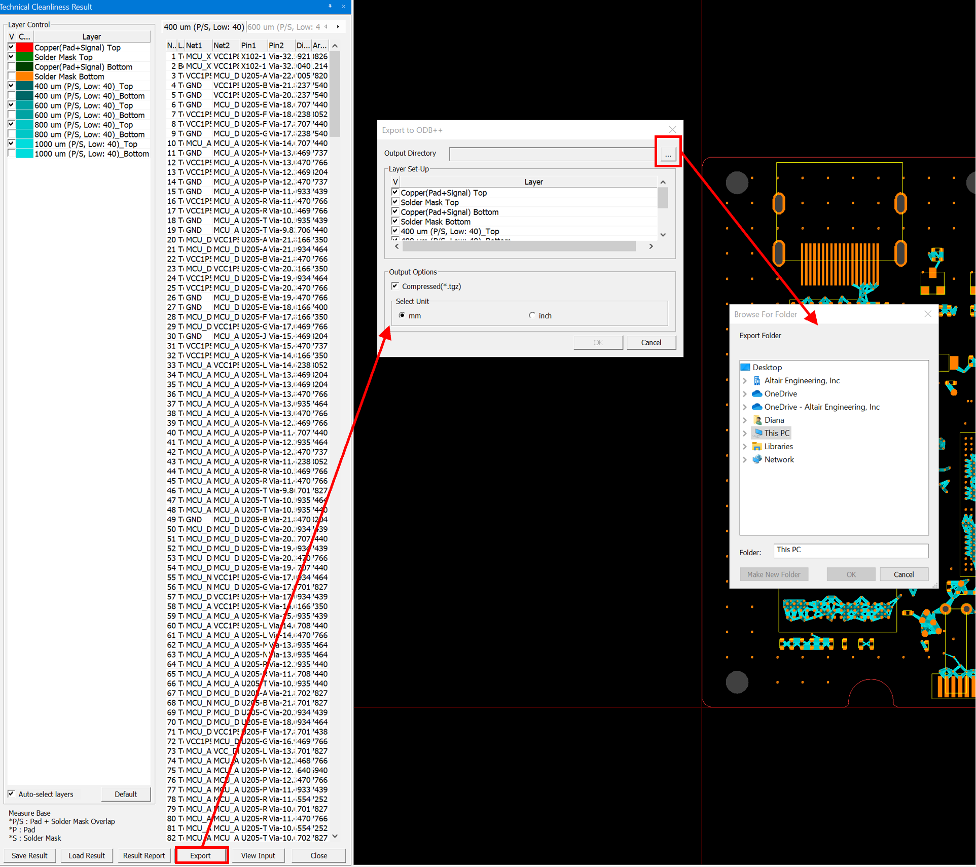 - Export - This button exports the result data to ODB++ format.