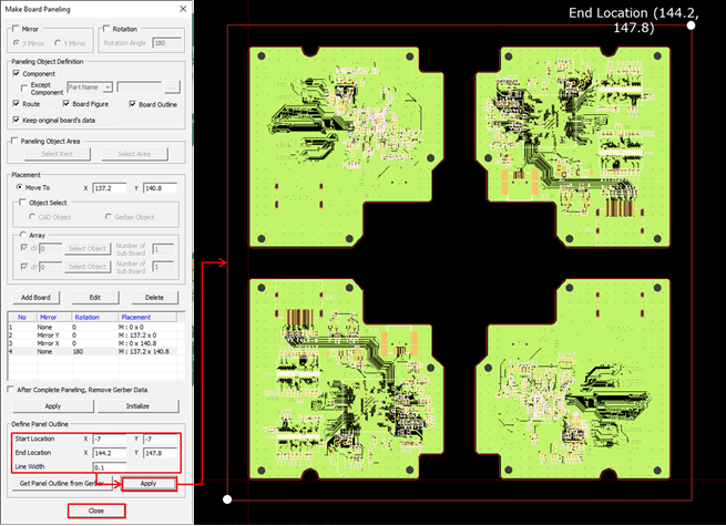 5. Click Close to close the Make Board Paneling dialog.