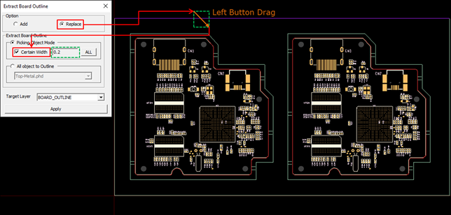 2. In the Extract Board Outline dialog, select Replace.