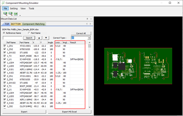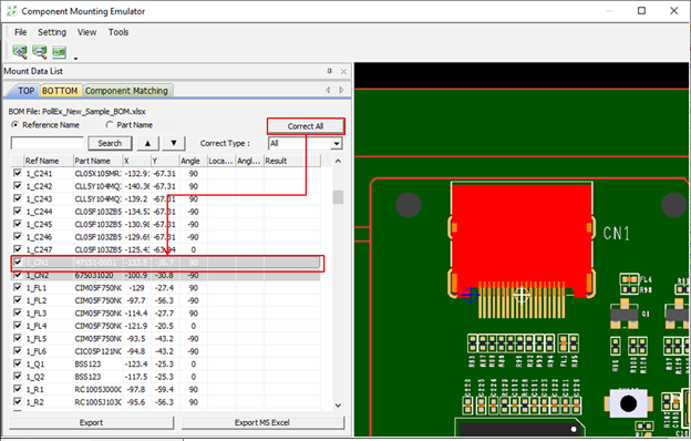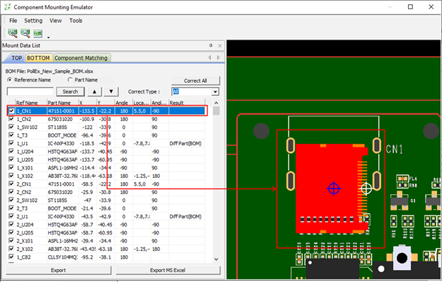 The Mounting Emulator pre-verifies and corrects the mounting coordinate data by utilizing the 3D component package library (UPF Library) information registered through UPE.