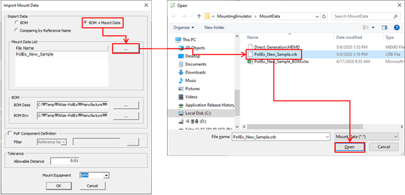 Figure 2.The Import Mount Data dialog opens. - In the Import Mount Data dialog, select BOM + Mount Data.