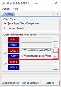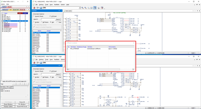 PollEx CP (Cross Probe) is a software used to compare two different designs and find the differences.