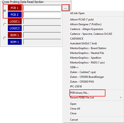 1. Select PCB, click for PCB1, and select PDB binary file.