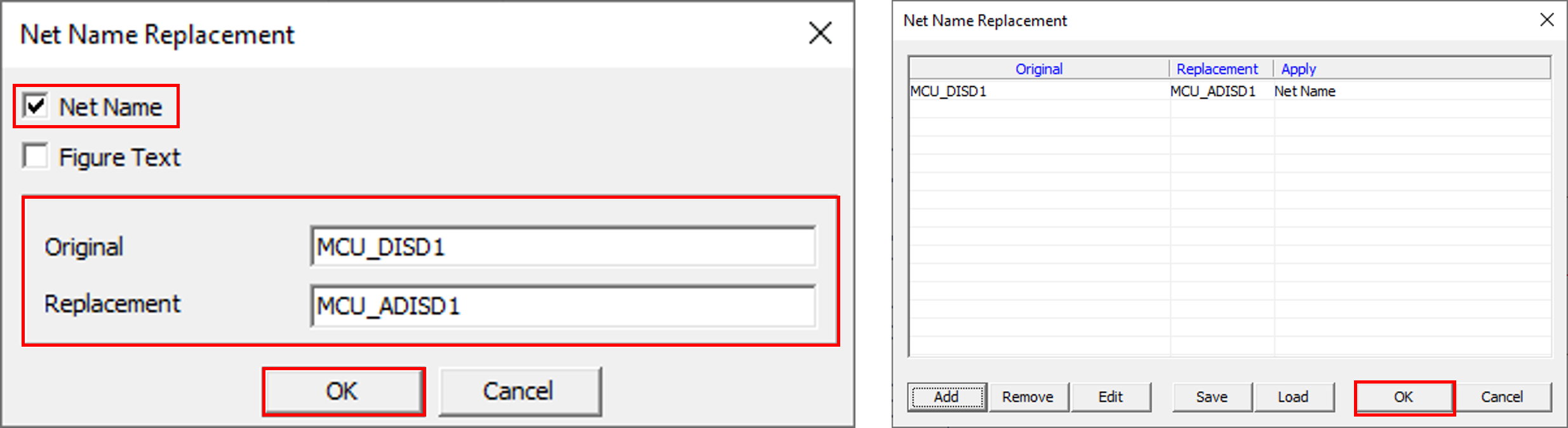 Figure 17.Replaced Name is applied in the schematic design, but text of the net name is not changed.