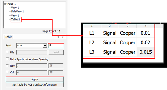 Figure 15. - Select a table from the list and enter the stack information in the table.
