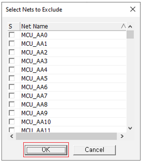 The Selects Nets to Exclude dialog opens. You can specify nets that should not be composited with other nets, such as Power and Ground nets.
