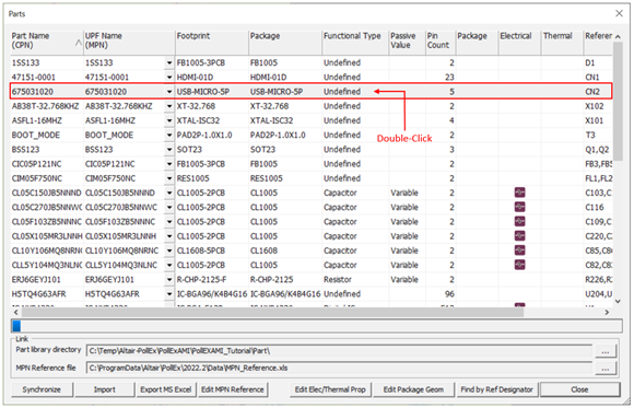 1. Double-click RC1005J000CS in the Parts dialog.