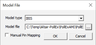 6. Click to search and select the IBIS file (C:\ProgramData\altair\PollEx\<version>\Examples\Solver\SI\Simulation_Model\test_ibis.ibs) for Controller device and click Open to open this file and close this Explorer window.