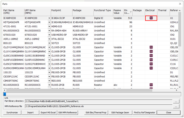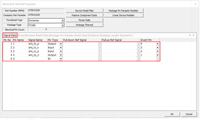 15. Click Package Pin Parasitic Model Data to verify the Resistance, Inductance, and Capacitance.