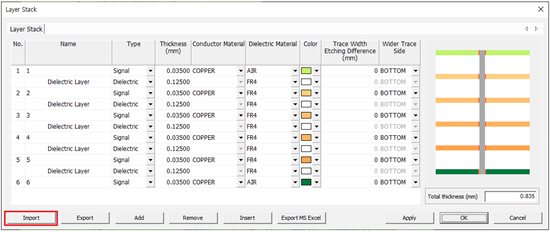 2. In the Layer Stack dialog, click Import.
