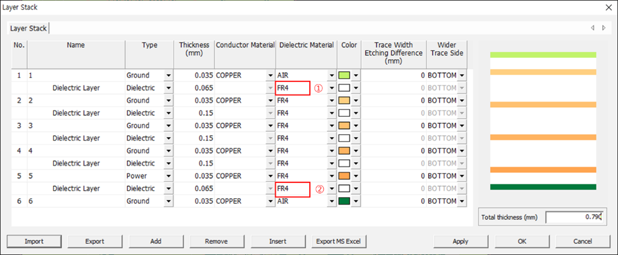 1. For the top layer, click at 1 and select FR4.0.