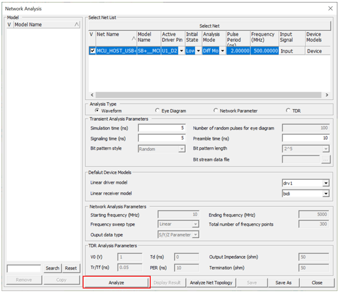 2. Select the desired net MCU_HOST_USB+ to analyze.