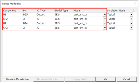 11. Select the first line and click Display to invoke the IBIS Manager dialog.