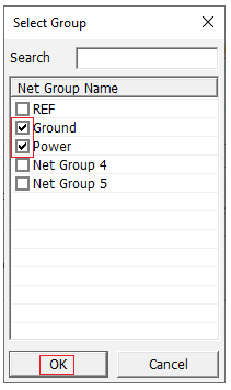 The Select Group dialog opens. You can assign component group that will be considered as open state during searching signal net.