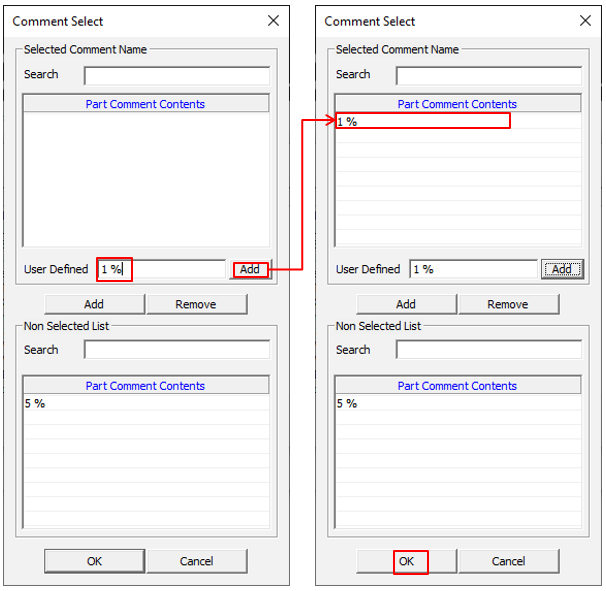 - In the Comment dialog, enable the Tolerance % checkbox.