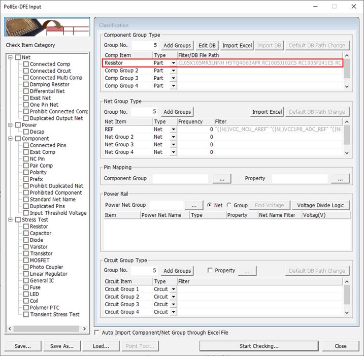 Figure 71. - In the Component Group Name section, enable the Resistor checkbox.