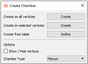 Creates a chamber at the selected vertices. Click Create to display the vertices and select them. To end the selection mode for this option, close the window or Create again.