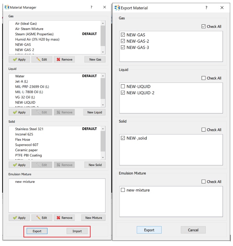 In Flow Simulator, you can import and export the material properties in JSON format.