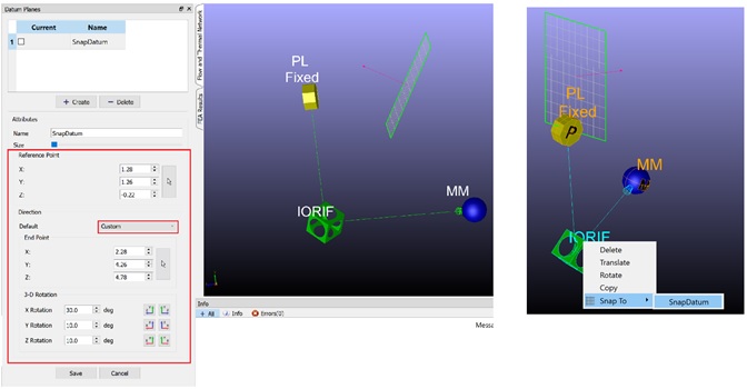 Flow Simulator allows the user to create and save Datum Planes to use as an anchor for model entities. For example, if items were moved around as shown below: