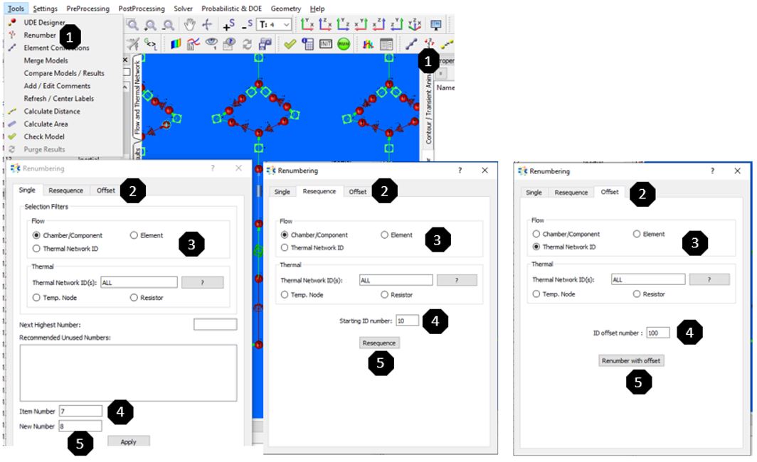 2. Resequence: Resequence is mainly for re-arranging Flow Element/chamber by providing Starting Id Number. Ex. If a model consists of chambers 3, 5, & 20 and user provided starting id as 10, after clicking Resequence the new chamber ids will be 10,11 &12.
