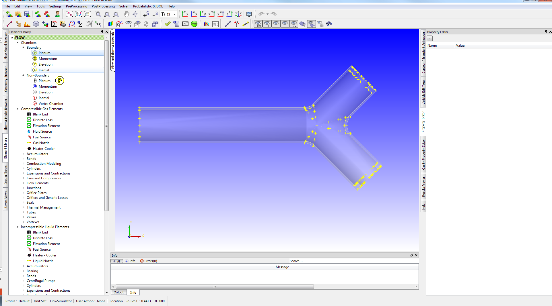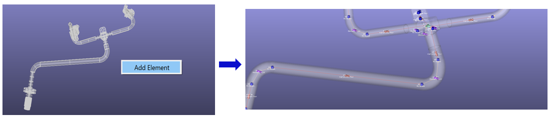 Flow Simulator enables to import CAD geometry and automatically generate Flow Simulator elements based on the selected faces. Face Recognition functionality enables users to select faces from their CAD geometry and creates elements automatically and inserts at the selected faces. Moreover, all the geometrical values of diameter, length, angle will be measured and filled in Property Editor automatically. The available elements are Tube, Bend, Junction, and Canonical Transaction.