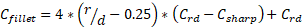 There is also an equation from Huning (ref 2) for holes that are perpendicular to the surface. The same equation is used for all corner types (sharp, fillet, and chamfer).