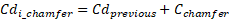 There is no data available for the incidence angle effect on an angled hole with a fillet or chamfer. The sharp corner Cd will be used even if the hole has a fillet or chamfer. The effect is different for holes with positive and negative incidence.