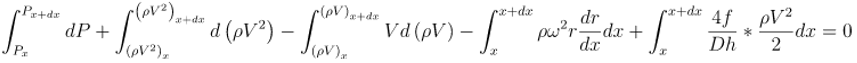An iterative solution of the one-dimensional momentum equation was taken from (ref 1) NACA TN 3150, “Method for Rapid Determination of Pressure Change for One-dimensional Flow with Heat Transfer, Friction, Rotation, and Area Change” [Ref 10] and includes all of the effects indicated in this title.