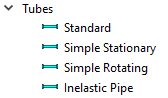 The four options shown here all use the same compressible tube element in the solver. The 4 tube choices in the GUI present different inputs to the user. The “Standard” tube has all available input options and may be the most popular choice for experienced users. The “Simple Stationary” and “Simple Rotating” have a reduced set of inputs. The “Inelastic Pipe” allows the user to select from a list of industry standard (ANSI/ASME, DIN, JIS) pipe sizes and surface roughness.