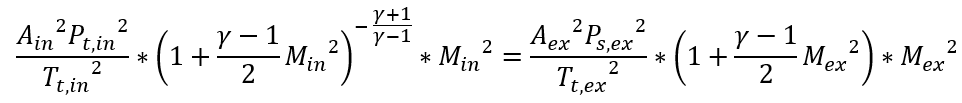 Exit Mach number is not a known quantity in Flow Simulator elements, but it can be calculated from known quantities using continuity: