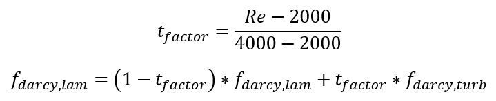 - FRIC_MODE = 4: Swamee + Turbulated fixed (Colebrook-White Smooth/ Rough wall Friction Coefficient; Fixed Turbulator Friction Coefficient)