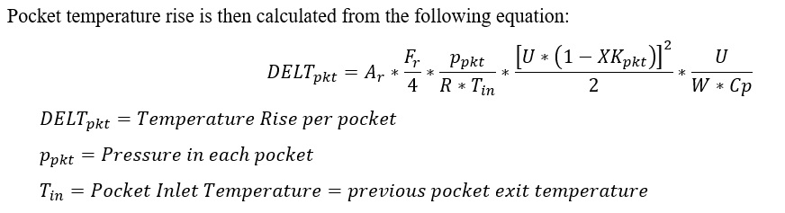 In addition to the fluid temperature change due to windage, the fluid temperature can also change due to the fluid convection to the pocket surface. The convection Q is applied at each pocket. The typical convection heat transfer equation is used.